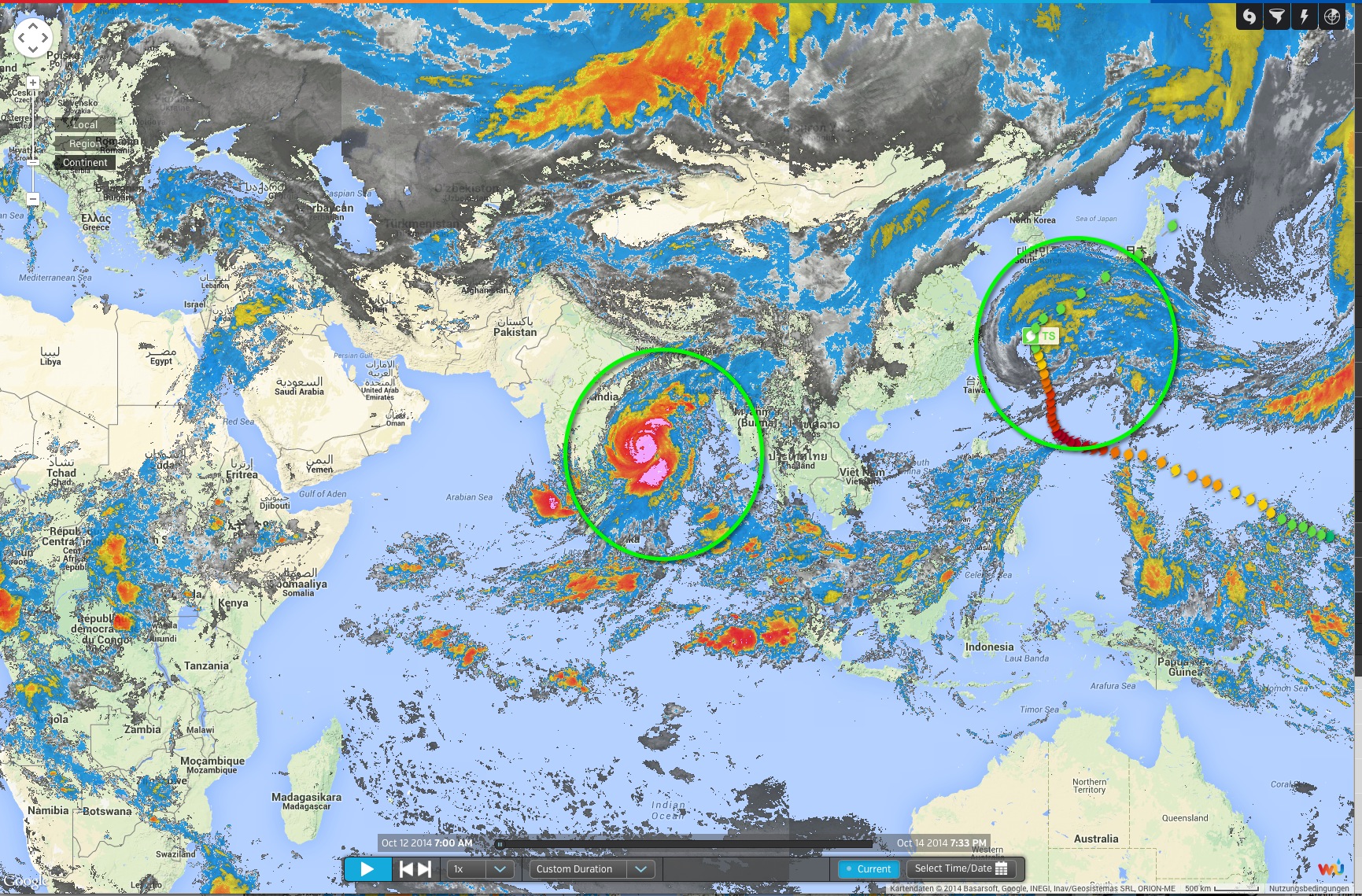 Zyklon „Hudhud“ in Indien und Verletzte nach Taifun Vongfong in Japan