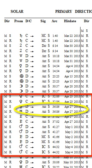 Uranus in Haus zwei, nach der Lehre von Morin im direkten Zusammenhang mit dem gegenüberliegen Hause 8, und somit ein Hinweis auf plötzliche (ruckartige) Todesfaktoren! Mit dem Mondknoten in der Nähe der Spitze 2/8 nochmals ein Hinweis auf ein Ereignis mit großer Wirkung, für den/die Menschen vor Ort!