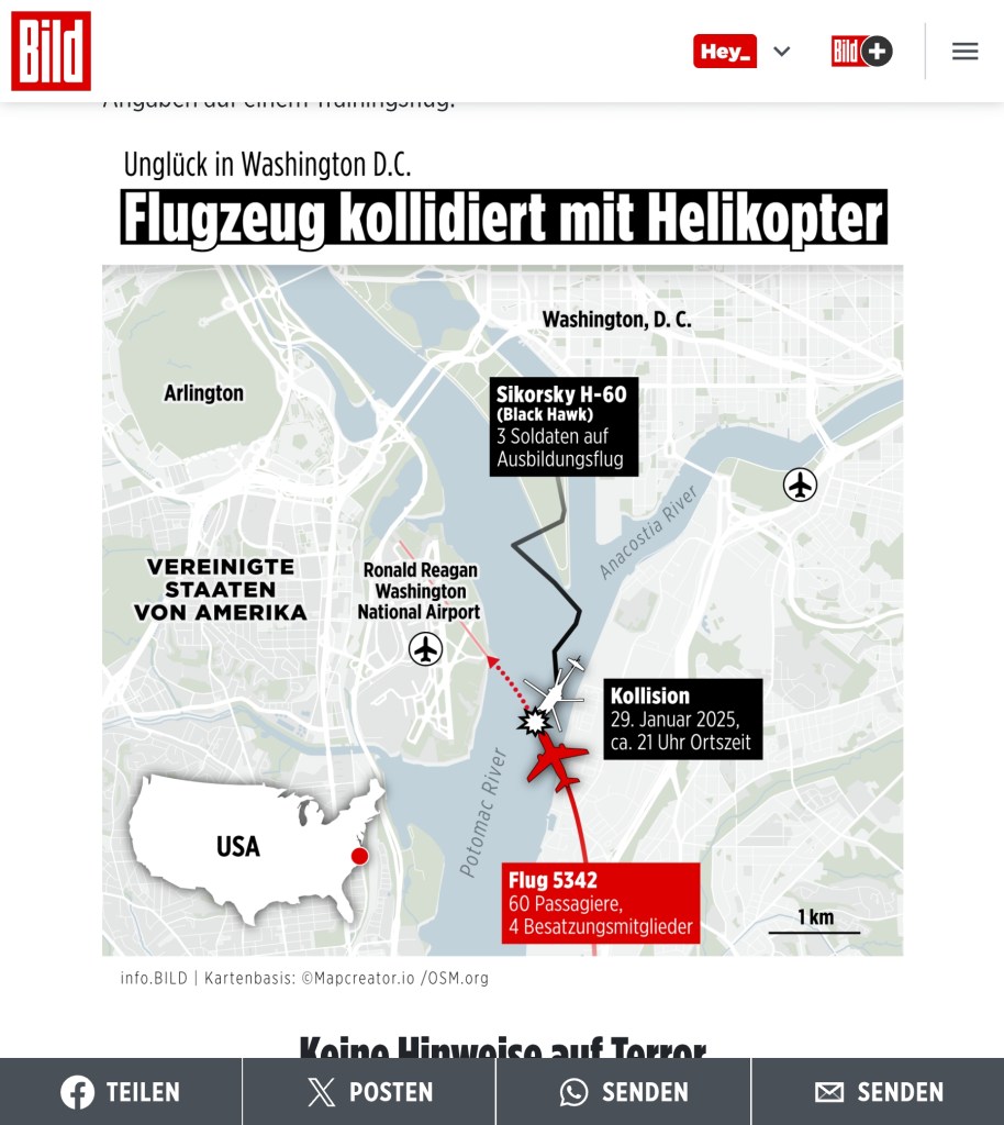 Am Mittwoch den 29.1.2025 ereignete sich ein folgenschwerer Zusammenstoß von einem Militärhubschrauber mit einem Linienflugzeug beim Landeanflug des National Airport Ronald Regan.